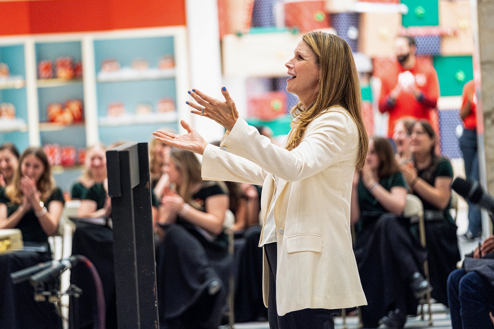 She has developed an active commissioning program, born out of a desire to showcase the Chorus's versatility and uniquely beautiful sound and has collaborated with some of the most important composers of our time, resulting in more than 140 original works and world premieres by contemporary composers, including collaborations with Pulitzer Prize-winners Caroline Shaw, Tania León, David Lang, Nico Muhly, Angélica Negrón, Bryce Dessner, Paola Prestini, Nathalie Joachin, Paul Moravec, Toshi Reagon, Alev Lenz, Anna Clyne, Aleksandra Vrebalov, John King, and William Brittelle.